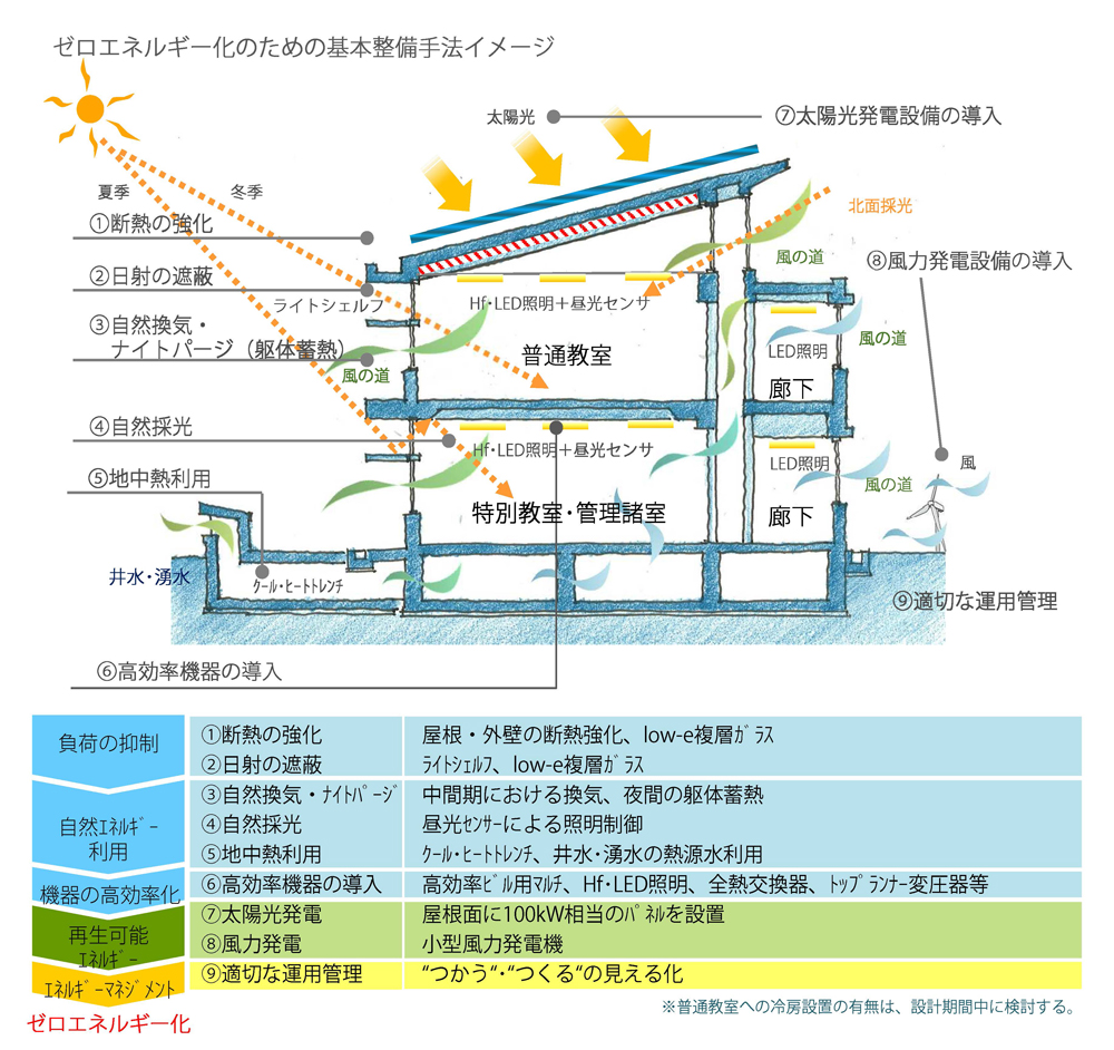 瑞浪北中学校は、平成26年度に当該事業の認証を受けた。瑞浪北中学校では、自動化できるシステムをあえて手動にしており、生徒自身が考えて行動し、省エネで快適な環境を作りながら、ゼロエネルギースクールを達成することを目標としている。